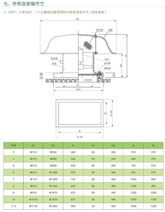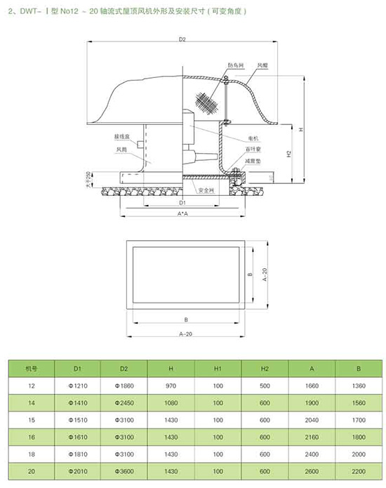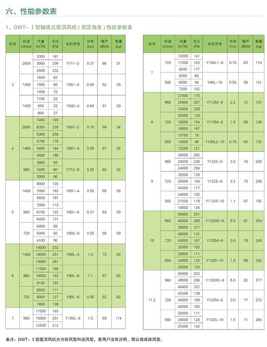屋頂風(fēng)機(jī)型號、結(jié)構(gòu)及性能: