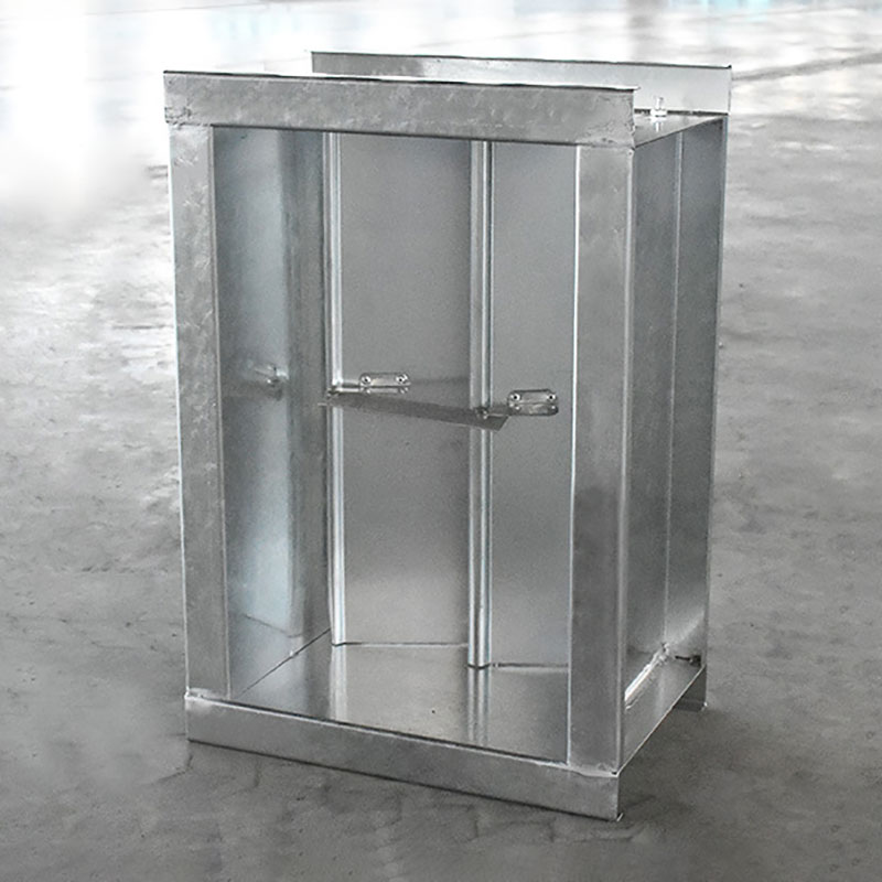 現有一種排煙防火止回閥,轉軸位于進煙口的下部,他的轉軸是活動的,當排煙機開啟時,葉片的底邊轉動使葉片打開,氣流斜著朝上流動進入排煙道,進入排煙 道后對排煙道內上升的氣流影響較小,排煙就會很順暢,排煙量也會很大,排煙機的噪聲就相對較小。當排煙機關閉后葉片的下部設的配重就會把葉片拉回來達到關 閉止回的功能。對過適當的配重設置可以使葉片的開啟角度接近90度。