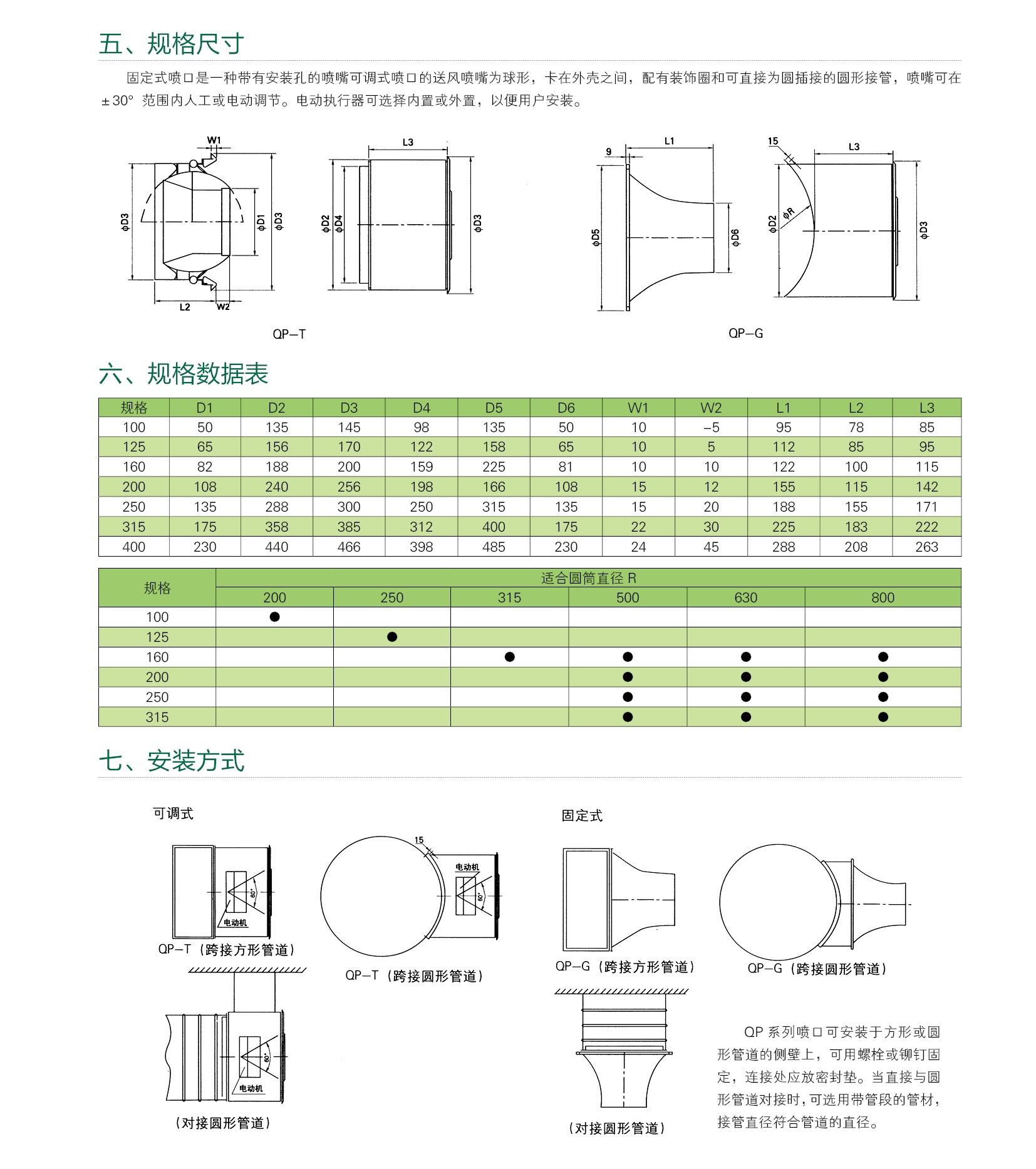 常用規格尺寸:Φ100、Φ125、Φ160、Φ200、Φ250、Φ315、Φ360、Φ400、Φ500、Φ630