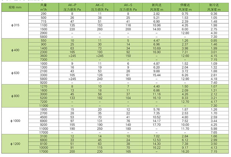 旋流風口選用主要控制參數風口型式、材質、規格、出口風速、全壓損失和氣流射程等。