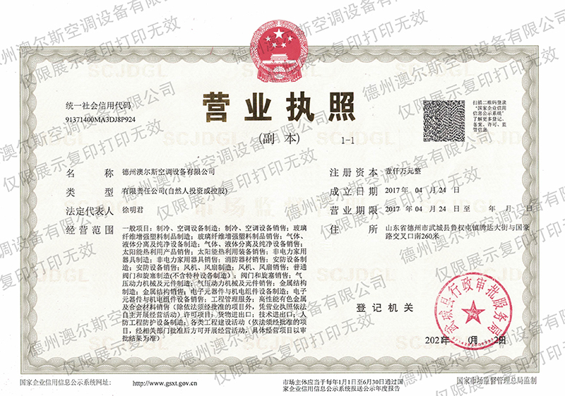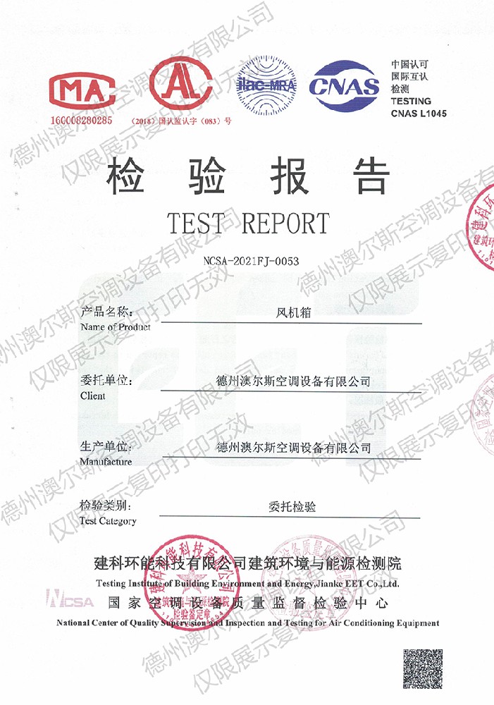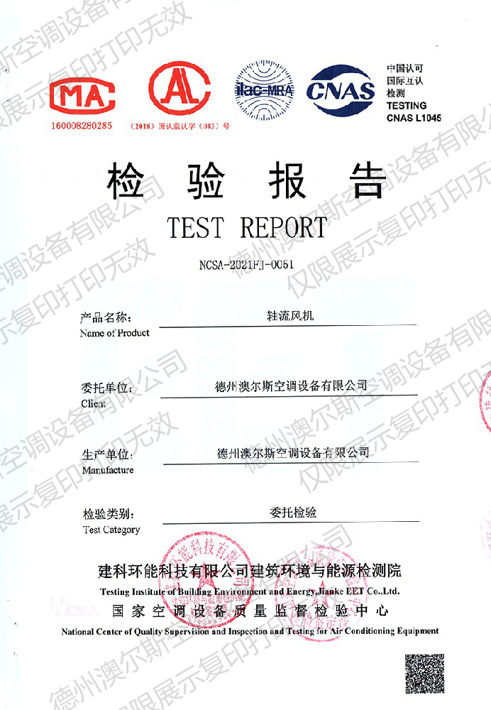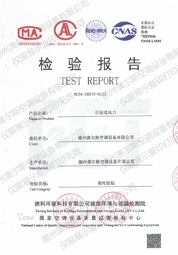 德州澳爾斯空調設有限公司是一家集生產設計,營銷服務為一體的現代化生產企業。現代化生產車間,精湛制造技術,所產消防通風排煙設備機械歷經市場重重考驗,不斷贏得客戶的贊譽。