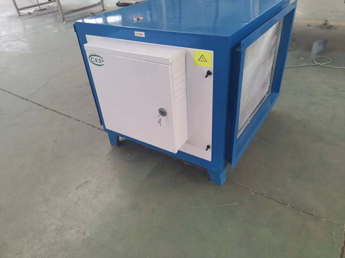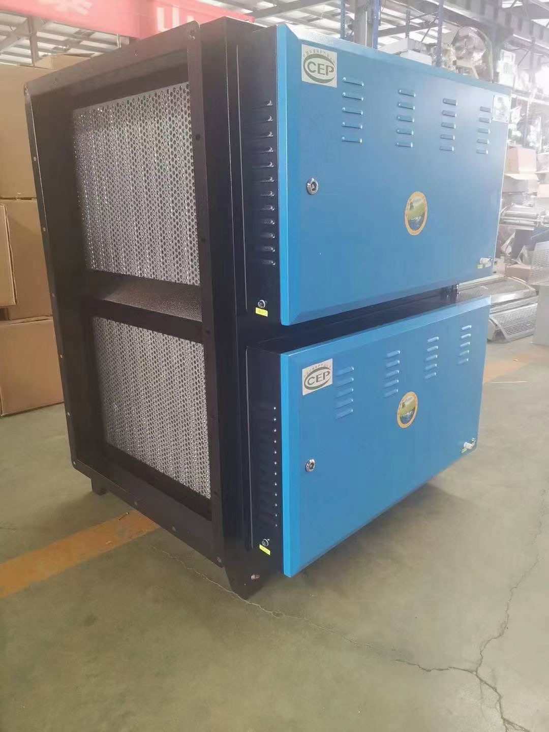 2、高效過(guò)濾消聲段:經(jīng)過(guò)前端處理后,去除了大部分油煙,而逃逸的微米級(jí)油煙氣被后置的高效過(guò)濾段(粗過(guò)濾和精過(guò)濾)處理后大部分被過(guò)濾,余下的亞微米級(jí)的油霧微粒和煙氣中有毒有害物質(zhì)及異味等進(jìn)入低溫等離子體凈化段處理。